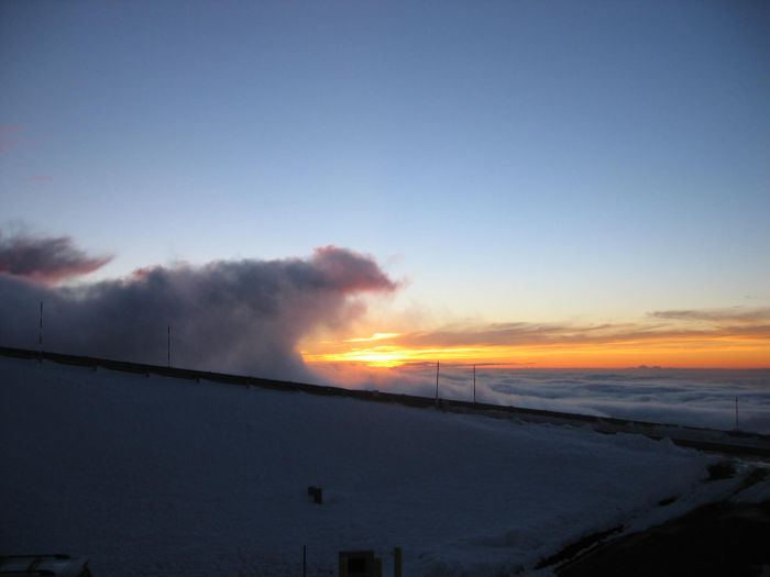 すばる望遠鏡 月とすばる 2005年8月12日 すばる望遠鏡 2005年10月7日 すばるドーム内。夕方、空気の入れ替えでドームシャッターから空がのぞく。 2005年10月7日 すばるドーム。陽が落ちて、風が止み、観測が始まるのを待つ。 2005年5月9日 ジェミナイ望遠鏡 2005年11月22日 すばる制御棟から見た夕陽。 2005年8月12日 / 2006年4月4日 □ 戻る